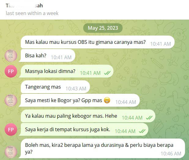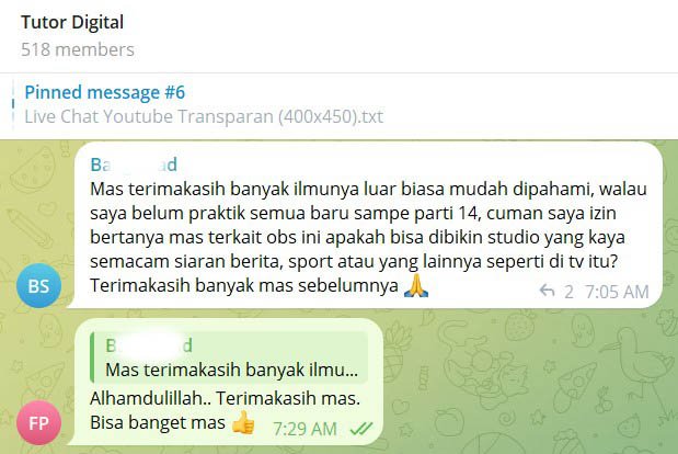 Silahkan tanyakan langsung kepada Tutor via chat WhatsApp jika ada kendala ketika belajar Kelas Broadcaster ini. khusus Private Class ada bonus vCall via WhatsApp 1x 60menit.