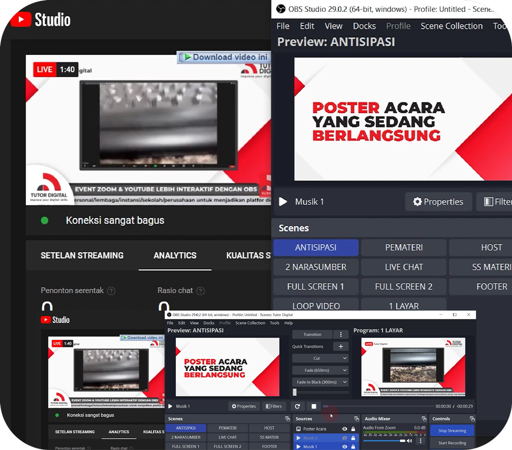 Materi disusun sedemikian rupa untuk pemula, bahkan bagi kamu yang belum pernah kenal atau menggunakan OBS Studio dan Zoom Meeting.